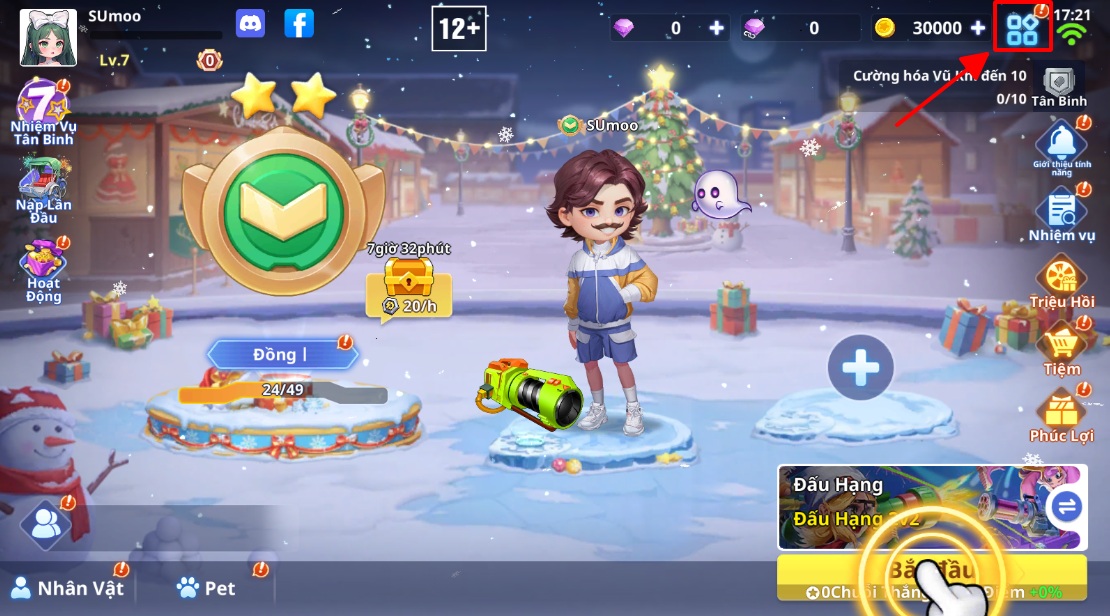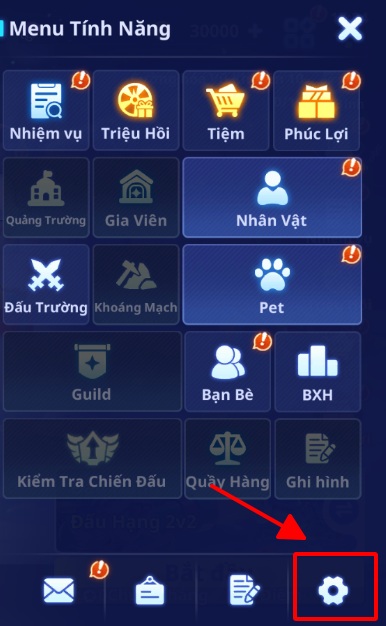 Bước 1: Khi ở màn hình chính nhân vật -> Chọn Menu tính năng