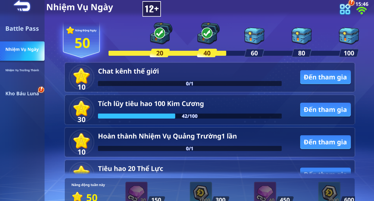 Tham gia hoàn thành các nhiệm vụ hàng ngày để nhận các mốc quà tương ứng