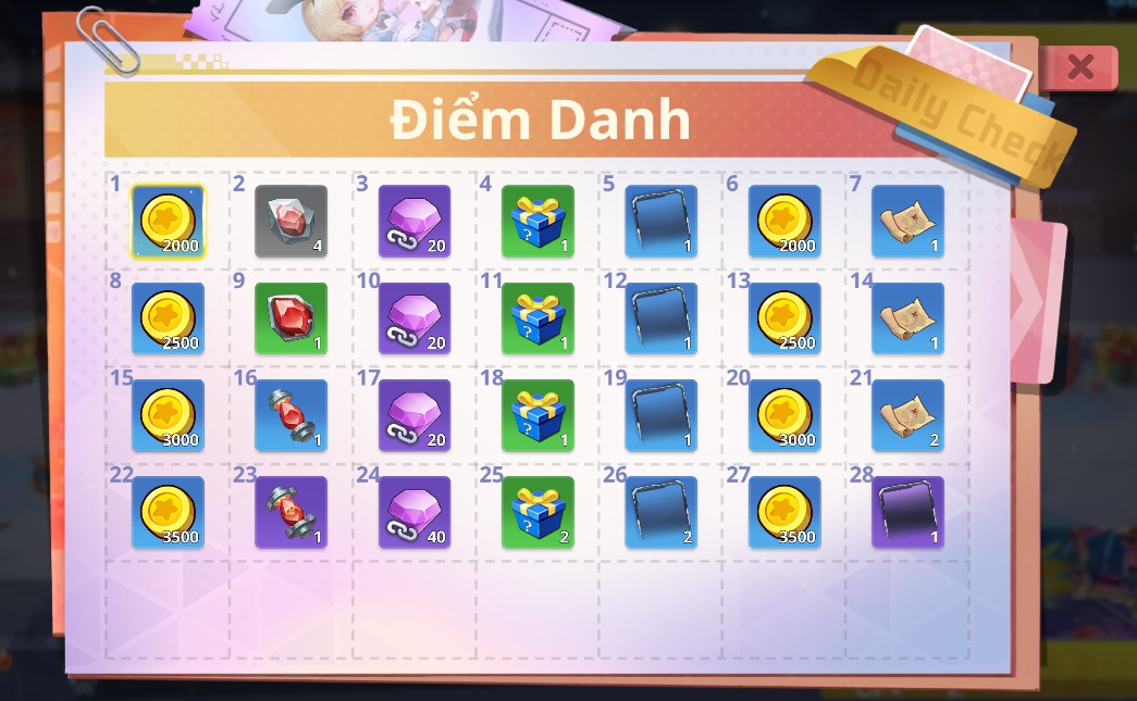 - Điểm danh nhận quà: