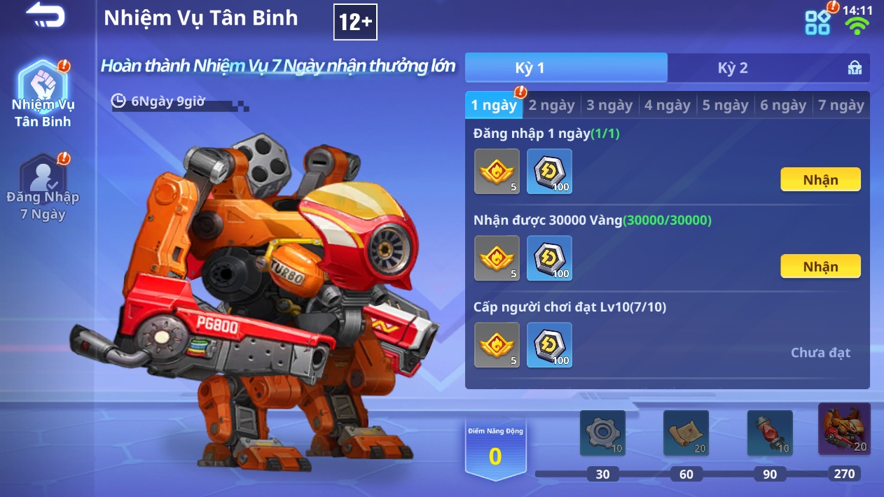 Đừng quên hoành thành các Nhiệm Vụ Tân Binh để nhận thêm được vật phẩm xu sao và các vật phẩm giá trị khác nhé.