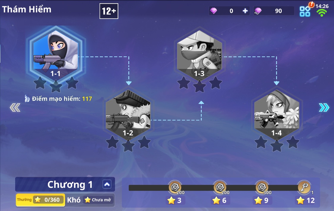 Đạt cấp 10 sẽ mở chế độ Thám Hiểm (30 chương thám hiểm)