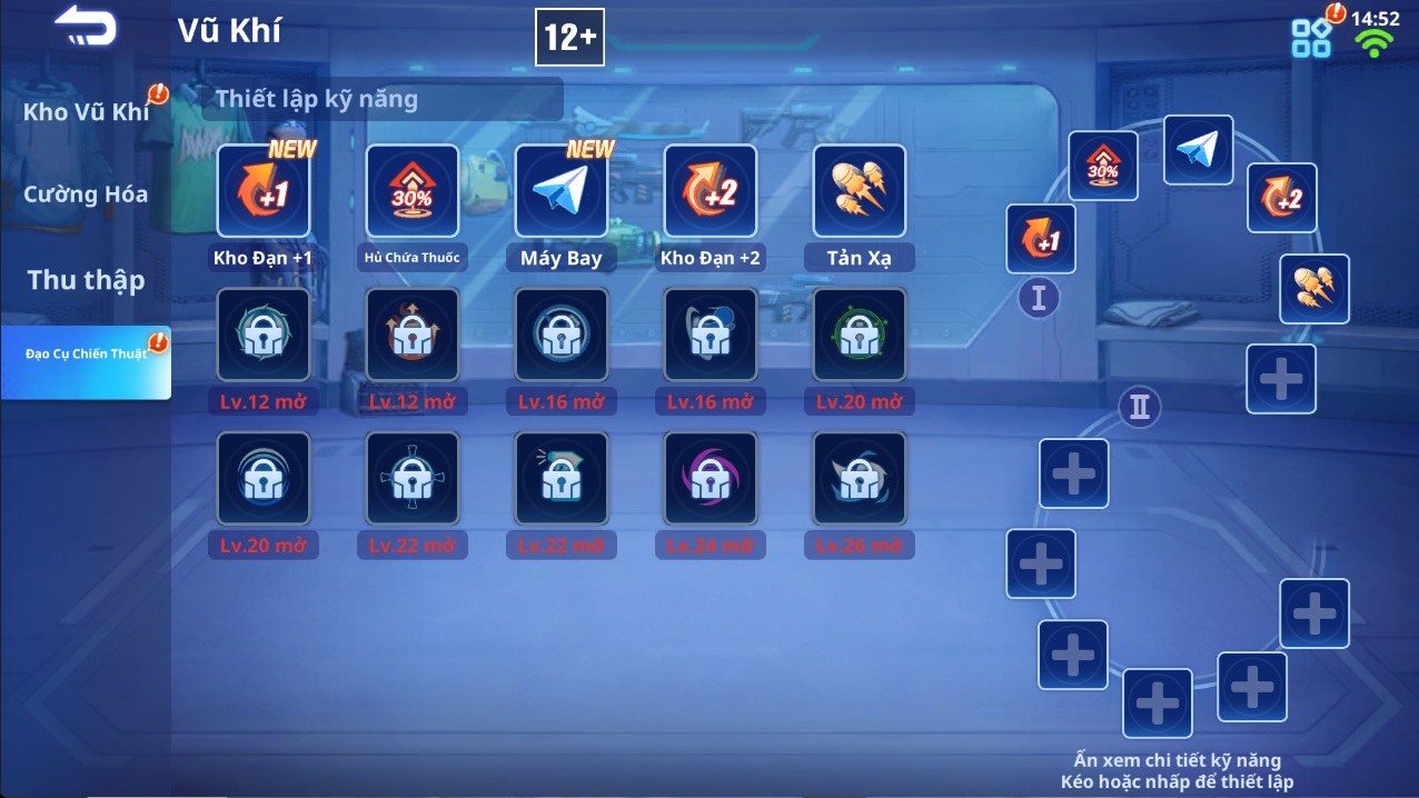 Mỗi cấp độ sẽ mở khóa đạo cụ kỹ năng, hãy lựa chọn các kỹ năng phù hợp với phong cách chiến đấu của mình để giành lợi thế trong giao tranh