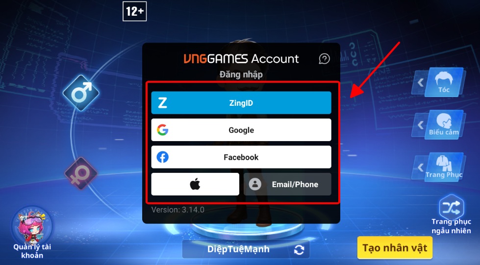 Bước 3: Thực hiện đăng nhập lại vào game => Chọn Quản Lý Tài Khoản