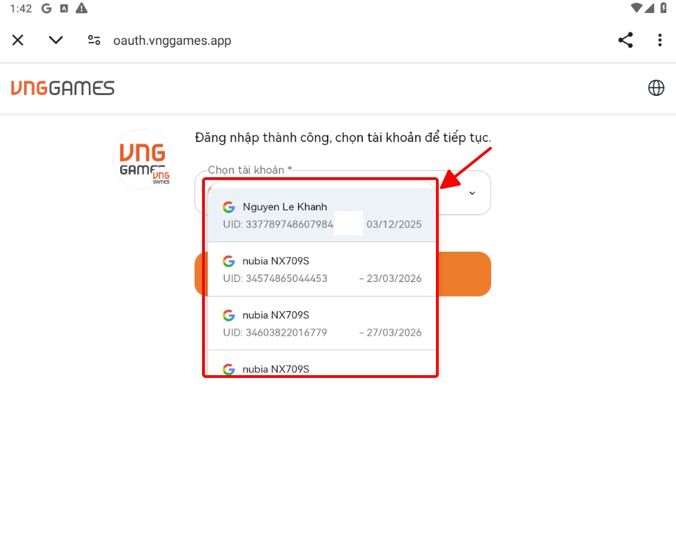 Bước 5: Tìm và chọn đúng Thông Tin Tài Khoản (UID) đã ghi nhớ khi nãy trên Webshop