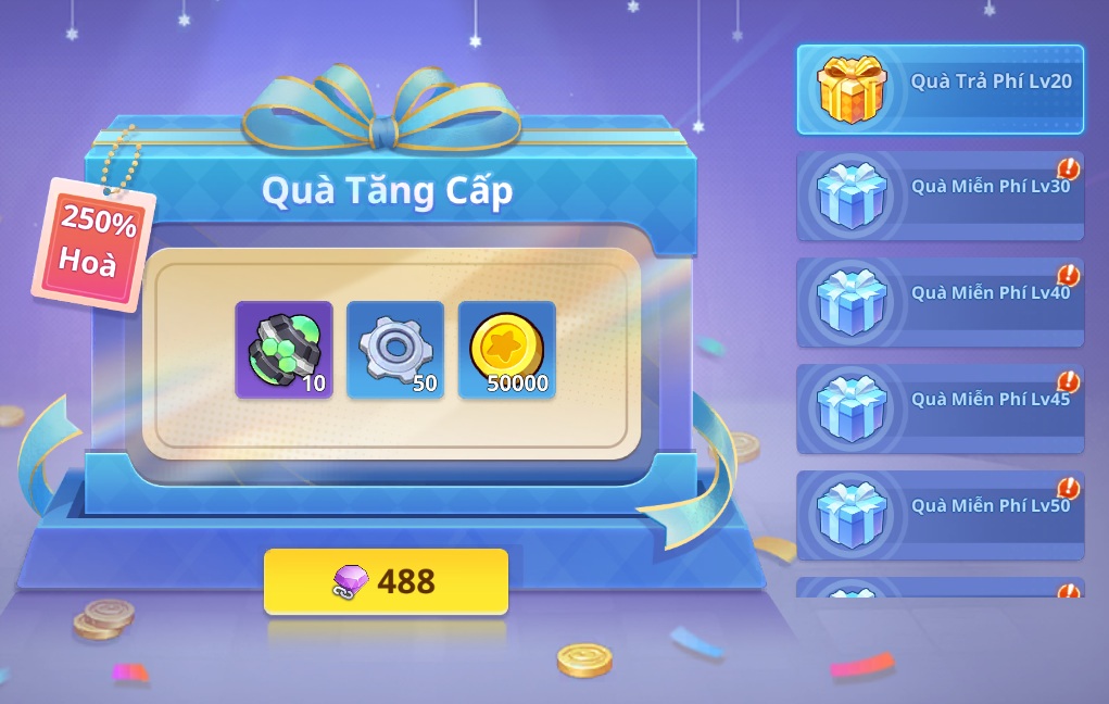 💎Nội dung: Shooter sẽ nhận được phần quà theo từng mốc Level tương ứng. Có quà miễn phí và và bonus nhận được thêm khi dùng Kim Cương Khóa để mua