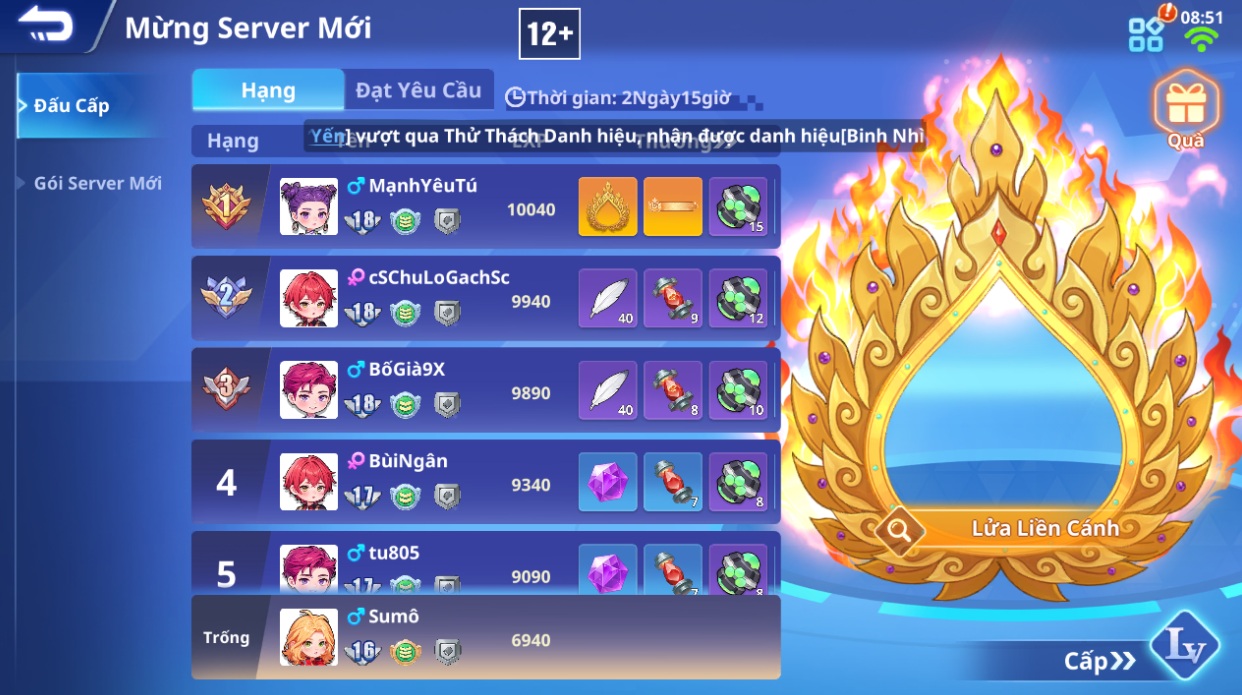 💎Nội dung: Tham gia xếp hạng theo cấp độ nhân vật. Phần thưởng sẽ được trao theo thứ tự xếp hạng cấp độ khi kết thúc sự kiện