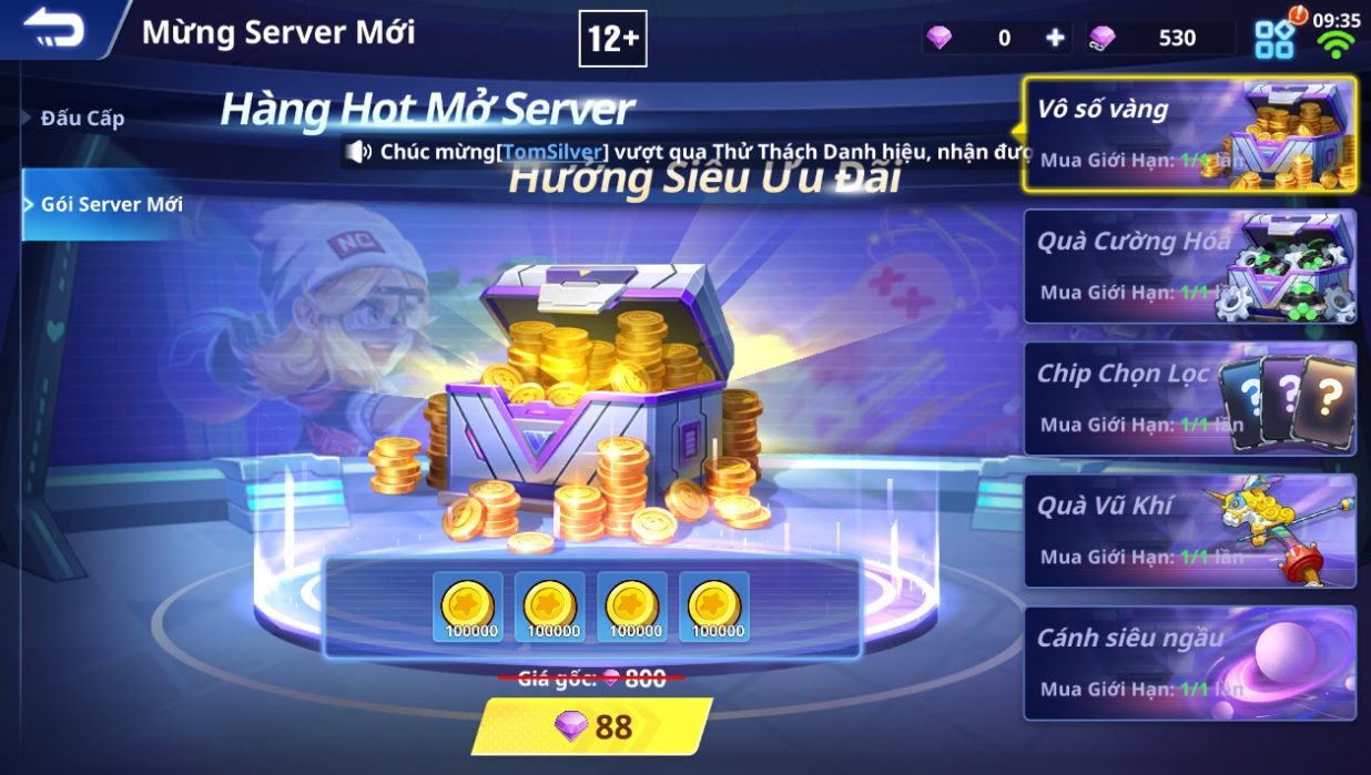 💎Nội dung: Sử dụng Kim Cương Khóa để mua các gói vật phẩm giá trị như Quà Vàng, Quà Cường Hóa, Quà Cánh,...