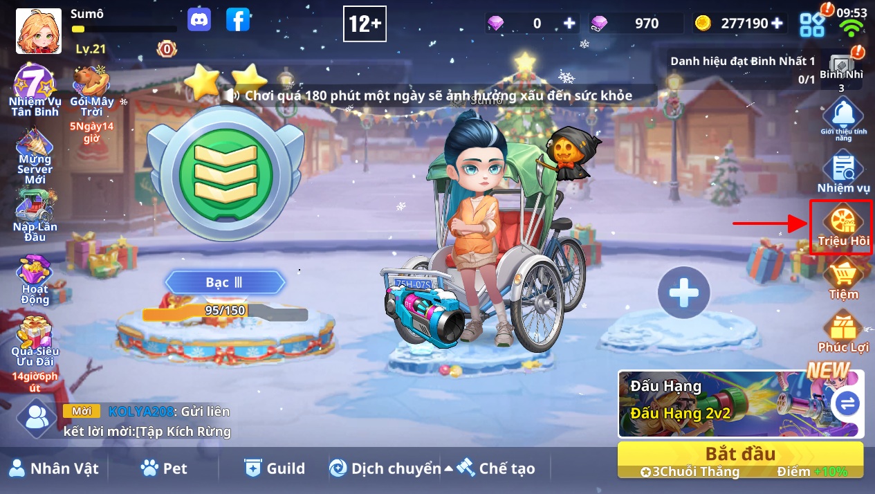 - Bước 1: Tại màn hình chính => Chọn Triệu Hồi