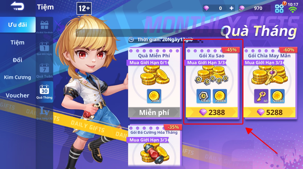 Xu Sao: có thể kiếm được qua các event, hoạt động nhiệm vụ hàng ngày như: Đấu hạng, Nhiệm Vụ Tân Binh và có thể mua bằng Kim Cương ở Tiệm