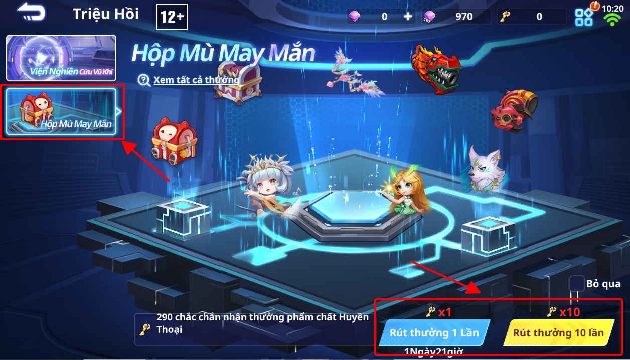 - Bước 2: Chọn Hộp Mù May Mắn => Rút Thưởng