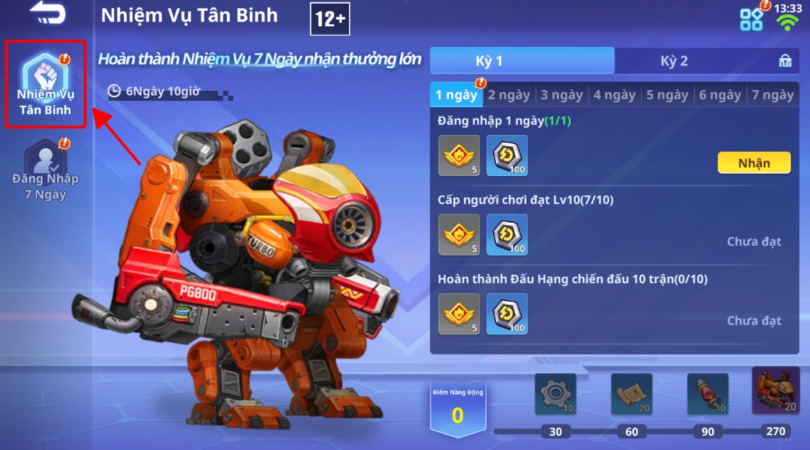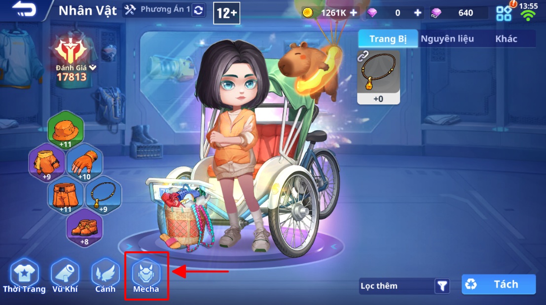 Bước 1: Chọn Nhân Vật ngay màn hình chính => Chọn Mecha