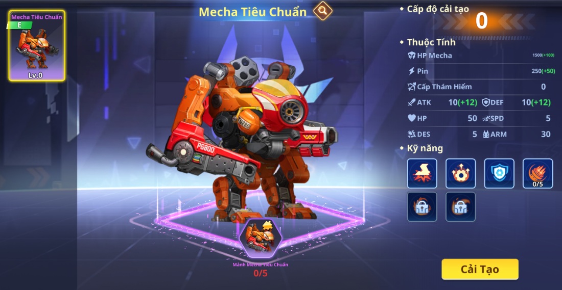 Bước 3: Tại Bồi Dưỡng => Shooter có thể Nâng Cấp và đọc các kỹ năng của Mecha để gia tăng điểm lực chiến